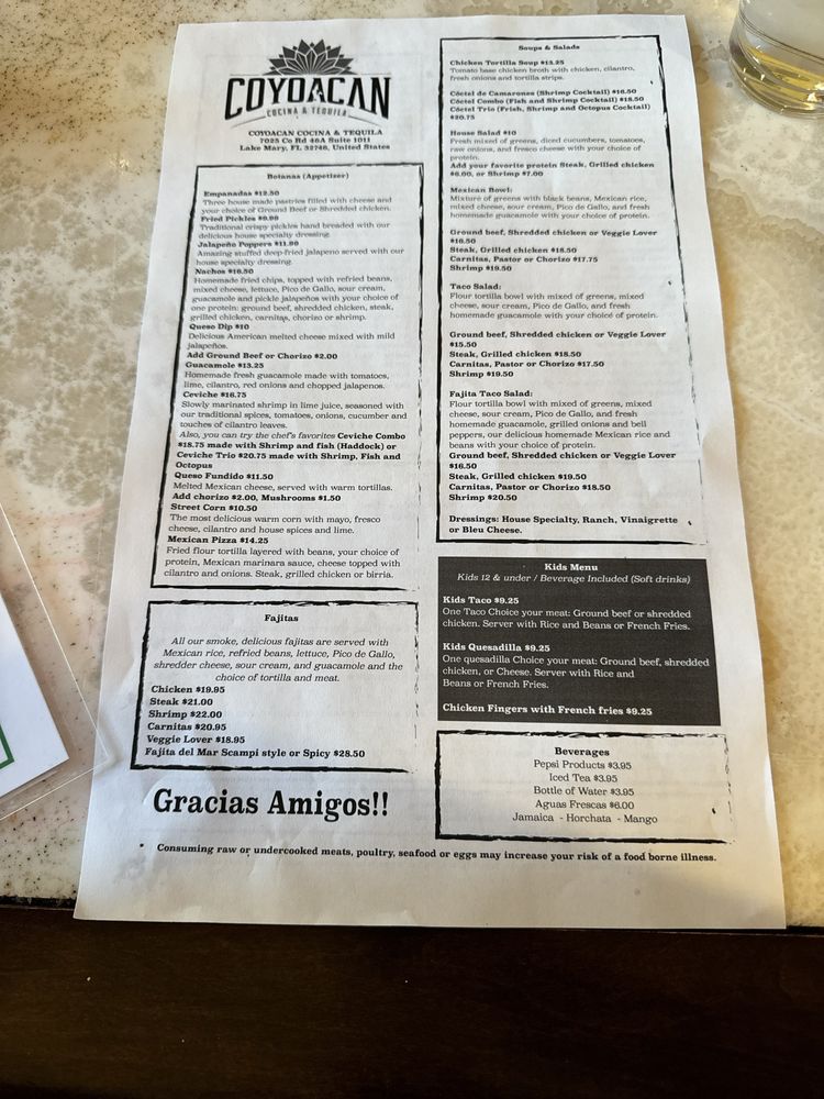 Coyoacán Cocina & Tequila offers a Mexican dining experience with a diverse menu and vibrant atmosphere. Their specialties include trio ceviche, chicken fajitas, and Birria tacos. Customers praise the flavorful dishes and strong drinks, along with friendly staff and quick service. Brunch options like steak omelet Mexicano and mimosa flights are also popular choices. The restaurant provides various drink specials, including margaritas, sangria, and Mexican mules. With outdoor seating, trivia nights, and happy hour specials, Coyoacán caters to a range of preferences, making it an ideal spot for gatherings and casual outings. The ambiance is upbeat, and the menu offers something for everyone, from traditional dishes to modern twists like Paloma Negra with activated charcoal. Overall, Coyoacán Cocina & Tequila stands out for its excellent customer service, flavorful food, and inviting atmosphere.